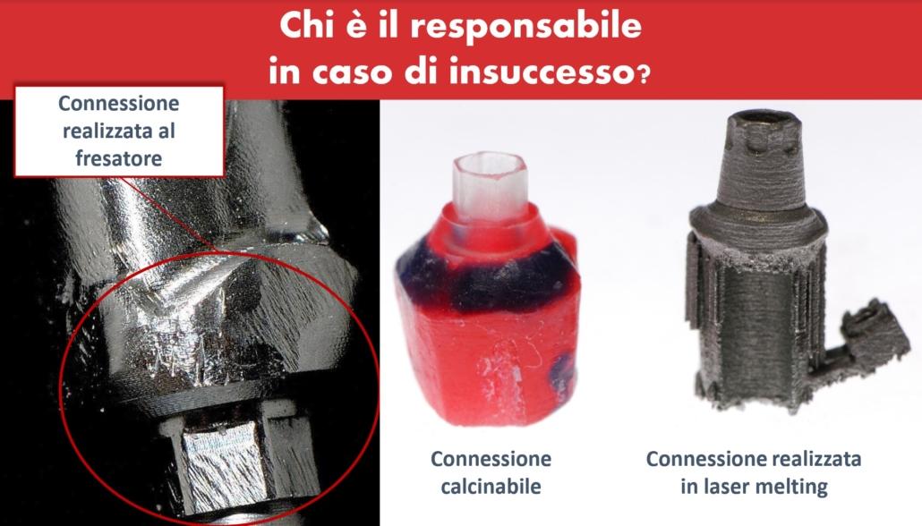 Realizzare un ABUTMENT compreso della connessione completamente dal pieno è possibile ma il suo produttore diventa automaticamente il responsabile dell’eventuale fallimento/danno alla fixture, come succede quando si realizza interamente per fusione.